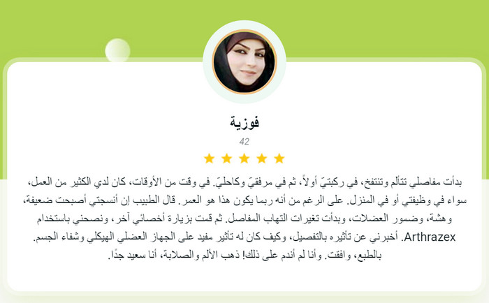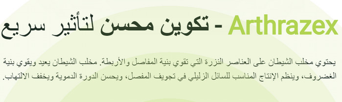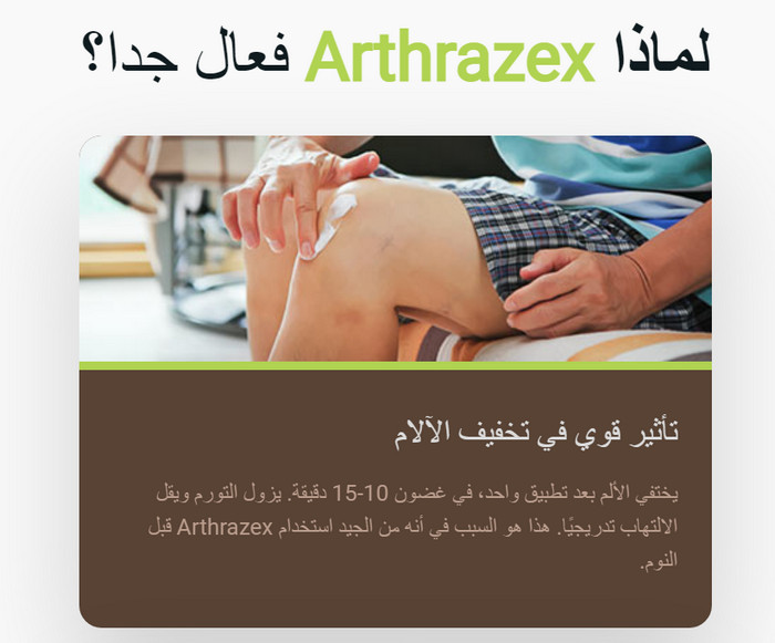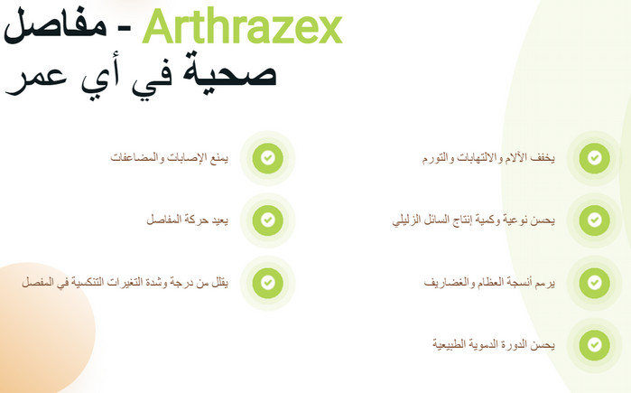 Arthrazex بالعربي يساعد جل المفاصل في علاج التهاب المفاصل ، والتهاب المفاصل ، وتنخر العظم ، وعرق النسا ، والروماتيزم ، وهشاشة العظام.
